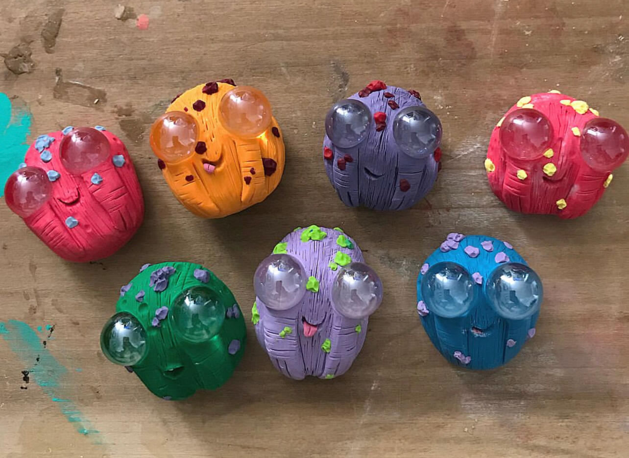 Circa 2016-Present DayI began using real rocks and stones that i source myself from waterways. I sculpt directly onto the rock surfaces with handmade glass eye designs.Present day Pobbles have become more diverse in rock varieties, refined in sculpting technique, and more sophisticated detailed glass eye designs - creating the Pobble Collectible sculptures seen today.